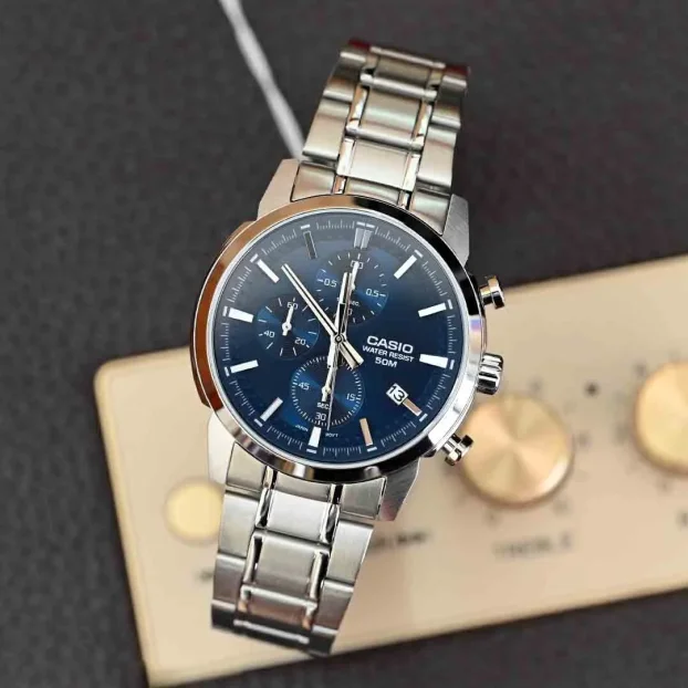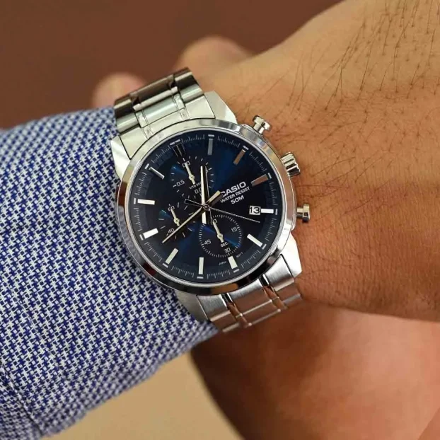 مشخصات اولیه مناسب برای آقایان نوع ساعت آنالوگ اندازه ساعت 47.5 × 42 × 10.5 میلیمتر عرض (میلیمتر) 42 ضخامت (میلیمتر) 10.5 وزن 119 گرم برند مقاومت در برابر آب تا 50 متر منبع انرژی باتری معمولی مشخصات ظاهری فرم قاب گرد جنس بدنه استیل ضدزنگ جنس قاب استیل ضدزنگ رنگ بدنه نقره ای رنگ صفحه سرمه ای رنگ قاب نقرهای جنس شیشه معدنی جنس بند استیل ضدزنگ رنگ بند نقره ای اندازه بند قابل تنظیم از 150 تا 205 میلیمتر نوع قفل کلیپسی ضامندار مشخصات عملکردی کرنومتر کرنومتر با دقت 1.10 ثانیه ظرفیت اندازهگیری: 59 دقیقه و 59.9 ثانیه حالتهای اندازهگیری: زمان سپریشده، زمان مقطعی، زمان نفرات اول و دوم تقویم نمایش تاریخ عمرباتری 3 سال با باتری SR920SW دقت ساعت ±20 ثانیه در ماه سایر سایر ویژگی ها وقتنمای معمولی آنالوگ: 3 عقربه (ساعت، دقیقه، ثانیه) صفحه کرنومتر (1.10 ثانیه، دقیقه، ثانیه) گارانتی 12 ماه مبدا برند ژاپن دستهبندی CASIO کاربری اسپرت