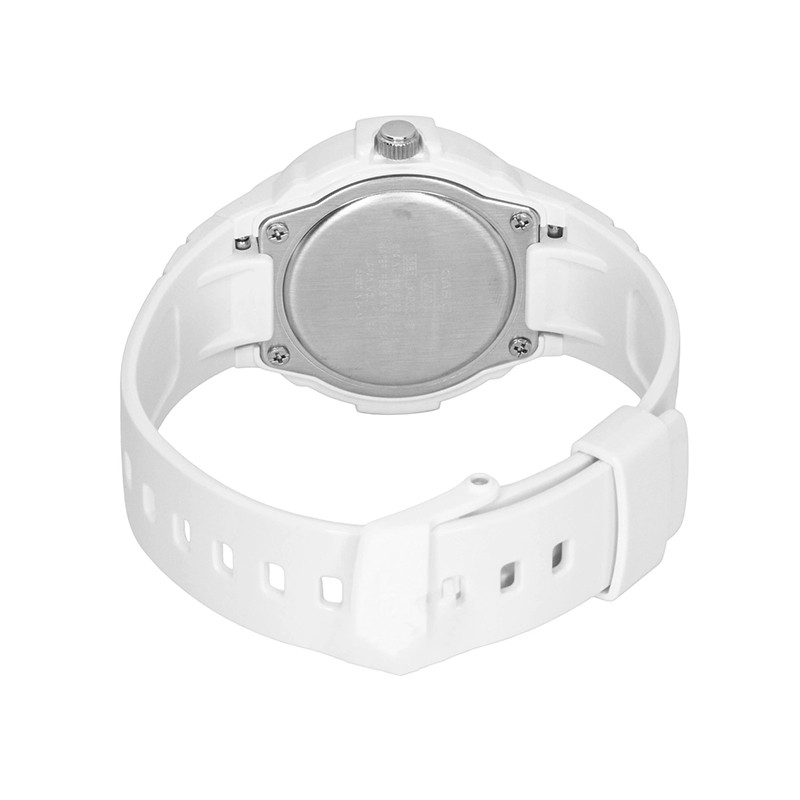 مشخصات اولیه مناسب برای خانمها نوع ساعت آنالوگ اندازه ساعت 40.9 × 34.7 × 12 میلیمتر عرض (میلیمتر) 34.7 ضخامت (میلیمتر) 12 وزن 24 گرم برند کاسیو (CASIO) مقاومت در برابر آب تا 100 متر منبع انرژی باتری معمولی مشخصات ظاهری فرم قاب گرد جنس بدنه رزین جنس قاب رزین رنگ بدنه سفید رنگ صفحه صورتی / کالباسی رنگ قاب صورتی جنس شیشه رزین جنس بند رزین رنگ بند سفید اندازه بند قابل تنظیم از 125 تا 180 میلیمتر نوع قفل سگکی ساده مشخصات عملکردی تقویم نمایش تاریخ عمرباتری 3 سال با باتری SR626SW دقت ساعت ±20 ثانیه در ماه سایر سایر ویژگی ها وقتنمای معمولی آنالوگ:
