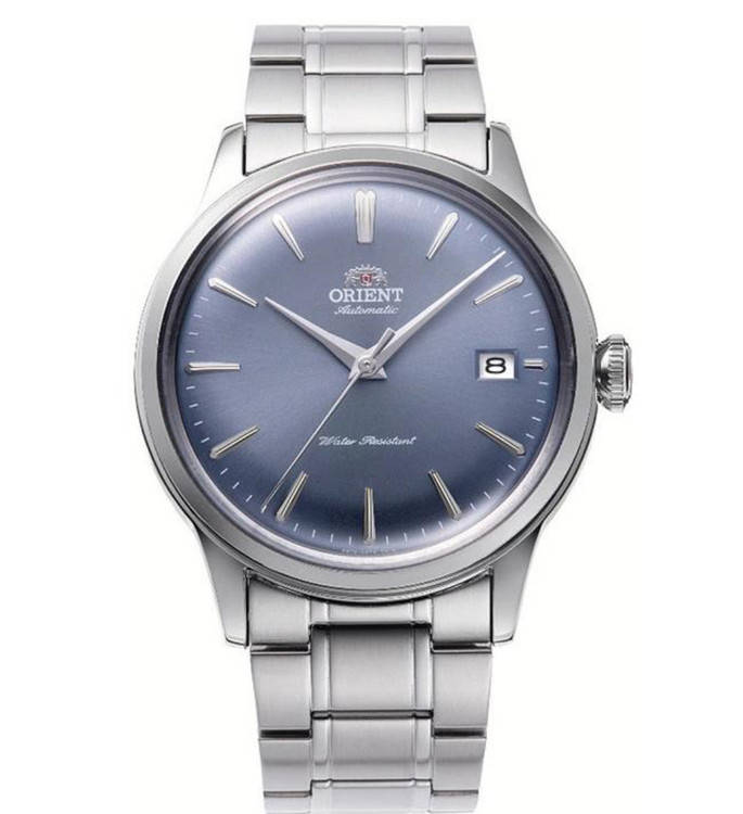 ساعت مچی مردانه اورینت orient با طراحی روزانه بند استیل و قاب استیل و صفحه گرد آبی با قابلیت داشتن تقویم و موتور اتوماتیک ژاپنی با انرژی مکانیکی و مقاومت در برابر آب تا عمق 30 متر به همراه گارانتی بین المللی
