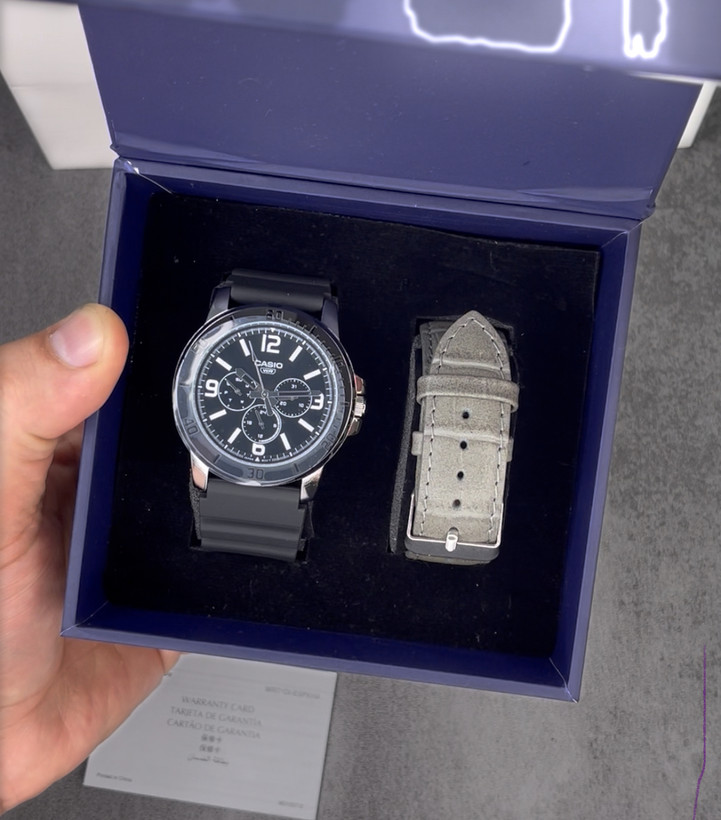 پک مردانه کاسیو مدلVD300همراه یدک چرم طوسی